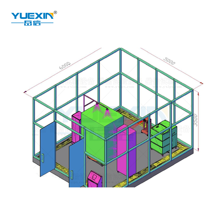 嶽信供應的IP淋雨試驗房方案,有箱式淋雨試驗,開放式噴淋試驗房,整體淋雨試驗房,可根據客戶産(chǎn)品使用場(chǎng)景定制防水試驗房、防水試驗台。與36個行業,超過2852家企業家共同見證,研發出10000+套防水試驗解決方案 。