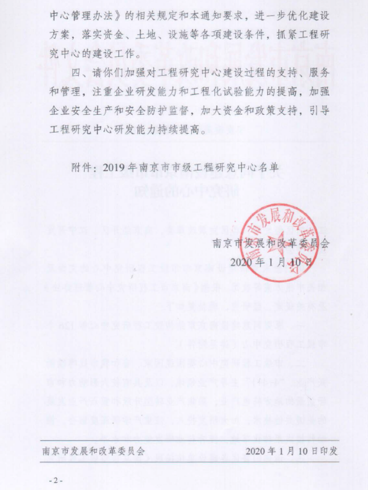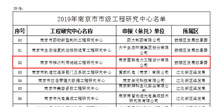 近日,NJGL申請的“南京市梯次利用儲能工程研究中心”獲得南京市發展和改革委員會批準(甯發改高技字【2020】10号),正式成立。“梯次利用儲能工程研究中心”的獲批,也标緻著(zhe)國聯人在電化學儲能電站設計及規劃方面,達到瞭(le)一個新的高度。