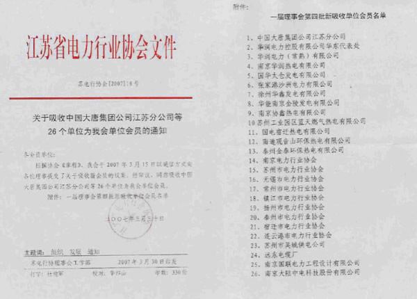 熱烈祝賀(hè)我公司成爲江蘇省電(diàn)力行業協會會員