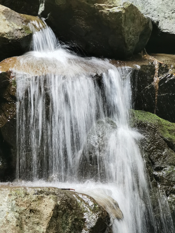 我們來到安吉另一個著名景點——藏龍百瀑。藏龍百瀑是浙江最大的瀑布群,有三折重疊,落差爲60多米的“長龍飛瀑”,有彩虹橫卧的“ 虹貫龍門”(人稱小黃果樹),更有神形皆備(bèi)的“神龜聽瀑”——真可謂瀑瀑相連,一步一景。雖然,正值盛夏時節,但行走於(yú)山澗之中涼爽宜人,甯靜幽雅。沿途兩岸千米高山對峙,森林茂密,路邊飛瀑流泉,又見懸崖疊障,奇峰林立,轉瞬間迎面翠竹連綿,再逢瀑瀑相連,亦是一步一景,一景一情。