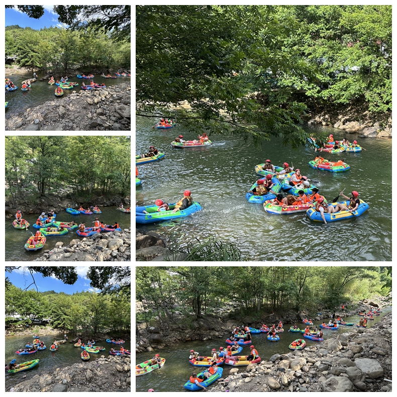 中餐後,車行山中,沿途風光秀美,溪道蜿蜒,溪潭相接,美不勝收。黃浦江源頭水的深溪漂流主打一個熱鬧開心,下瞭(le)車,上瞭(le)船,小夥伴們的激情已被點燃,舉勺揮“槍”,“戰争”一觸即發。 不知是誰使瞭(le)個“壞”,沖著(zhe)大家開瞭(le)炮,男子單打雙打、女子單打雙打、男女混合雙打,直至最後無差别的團體混合戰,好不熱鬧!此刻,這裏隻有放松,隻有快樂,隻有彼此。全程2公裏,隻要坐在皮艇中的小夥伴都徹底濕瞭(le)身,無一幸免,但這就是大家津津樂道的“打水仗”!此時的我們,眼中隻有“濕和對方”,濕得開心,濕得快樂,玩水的樂趣此刻也屬於我們這些“大孩子”。夥伴們樂山玩水之間,更增彼此情誼。