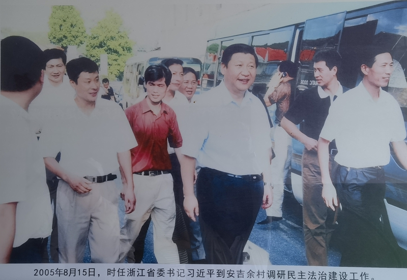 2005年8月15日,時任浙江省委書記的習近平在餘村考察,充分肯定瞭(le)村裏關停礦山、水泥廠(chǎng)的做法,以充滿前瞻性的戰略眼光首次提出“綠水青山就是金山銀山”的重要理論,爲餘村指明瞭(le)綠色發展之路。