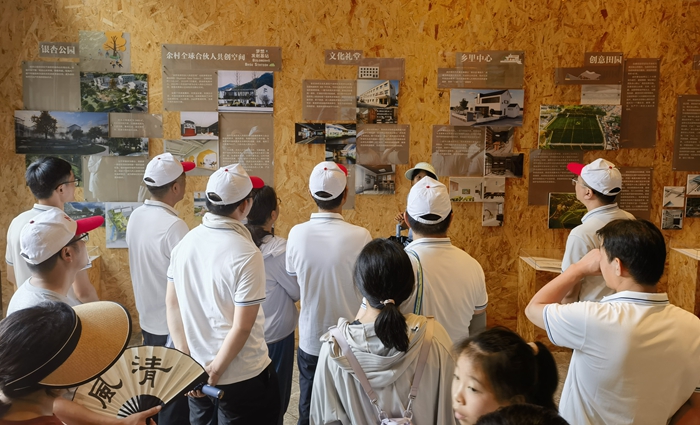 黨員及入黨積極分子在公司黨支部書記以及董事長的帶領下,步入餘村黨群服務中心,參(cān)觀學習瞭(le)解餘村的過去、現在和未來。