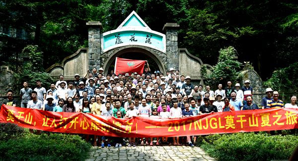 第二天的重頭戲是莫幹山遊曆。莫幹山位於天目山餘脈,浙江湖州德清縣境内,是中國四大避暑勝地之一。曆史上衆多的文人騷客曾爲莫幹山留下瞭(le)難以計數的詩文、石刻、事迹以及百多幢式樣各異的别墅。第一站——皇後飯店始建於1934年,位於上橫景區,由将軍樓、夢坡樓、随園、怡心閣、冷廬等十幾幢單體建築組成。因留有毛澤東、陳毅、張雲逸等同志的足迹而聲名大振。原景呈現毛主席居住時期的别墅内部裝修與家居甚爲簡單,一樓顯耀處赫然安置的會議桌讓參觀其中的我們不禁想到毛主席休息療養時,仍處處不忘工作、時時心系國家的偉人胸懷。沿著(zhe)偉人的足迹繼續第二站——劍池。莫幹山的山名得自幹将、莫邪二人鑄劍於此的古代傳說。劍池便是二人鑄劍、磨劍之處。屹立於劍池之邊,依稀看到二人爲鑄成蓋世寶劍,莫邪剪甲、斷發,作人狀,投爐中。幹将鑄劍成,被斬首,妻兒恨,爲抱仇,留血又留淚的感人場景。這風景绮麗的莫幹山背後,濃縮瞭(le)從古至今多少的傳奇故事,恐怕唯有這山山水水自己知曉。抽回思緒間,不由來到瞭(le)蘆花蕩公園。公園被被綠蔭如海的翠竹、清澈不竭的山泉所包圍,身在其中神清氣爽,有與天地自然融合的暢然。離開前最後的大合影,讓迷人風光與NJGL共享在“江南第一山”的畫框之中。