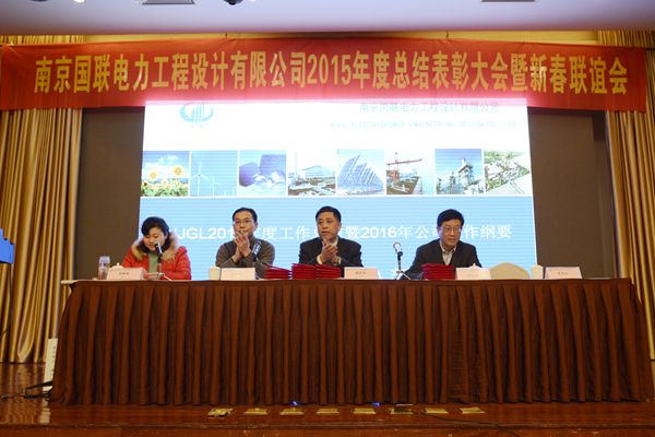 冬潤春花天上作,福滋祥瑞世間承。2016年1月22日室外瑞雪紛飛,室内暖意融融。南京國聯電力工程設計有限公司(簡稱NJGL)全體員工和江蘇常源電力建設監理有限公司(簡稱JSCY)的部分代表於南京鳳凰台酒店召開瞭2015年度總結表彰大會暨2016新春聯歡答謝晚會。公司員工和領導齊聚一堂,喜迎新春佳節,共話企業發展大計。